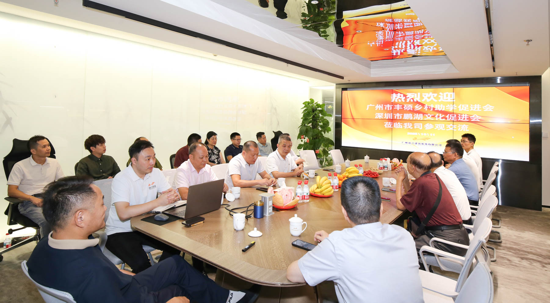 2025 年 10 月 11 日上午,欧宝ob官网登录入口(中国)有限公司(下称“珠江装饰”)会议室宾朋满座、暖意融融。广州市丰硕乡村助学促进会、深圳市鹏湖文化促进会的主要领导及理事会成员一行莅临我司,共同研讨促进会下半年工作规划暨丰良鹏湖酒店项目的专题路演。